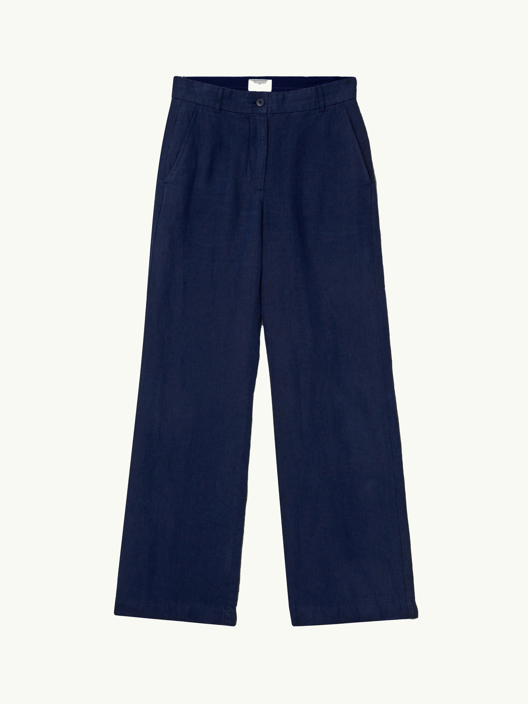 Ägnö-pellavahousut on valmistettu pehmeästä, esipestystä pellavasta Portugalissa. Pellava on esipesty, jotta se olisi pehmeää ja miellyttävää alusta alkaen ja pysyisi kuosissaan pesusta toiseen. Suora, rento ja käytännöllisesti muotoiltu malli, jossa on vetoketju ja vyölenkit. Housuissa on normaalikorkuinen vyötärö, vahvistettu vyötärönauha ja mukavat sivutaskut.