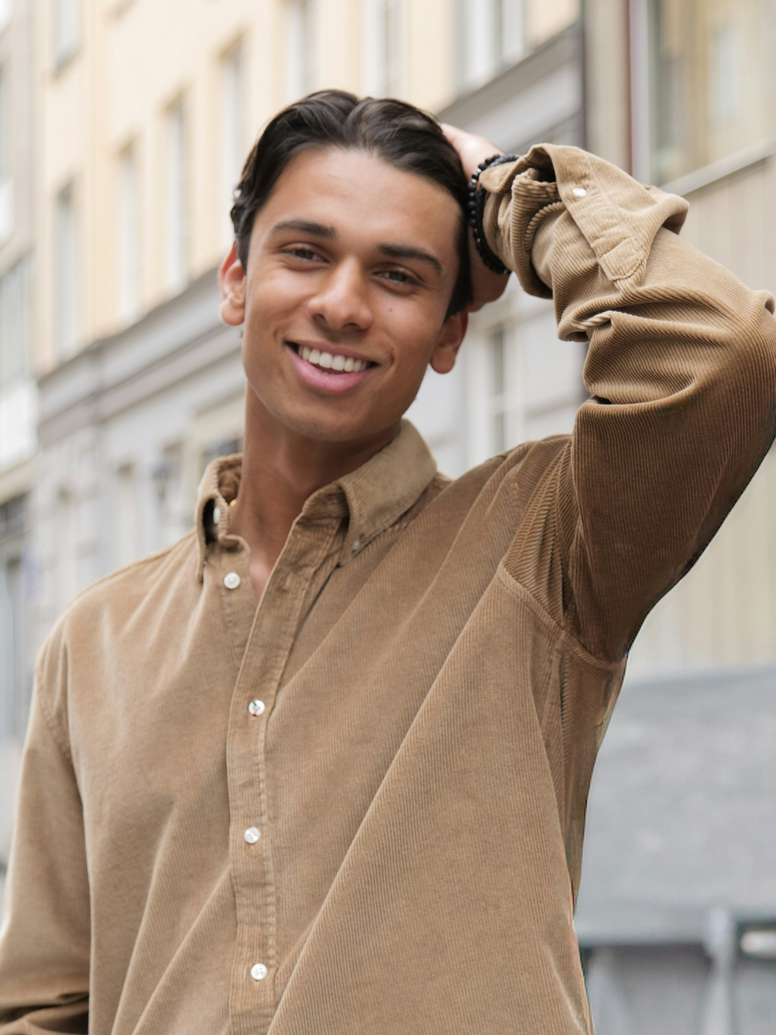 Björkö-paita on klassinen vakosamettipaita, joka on valmistettu pehmeästä ja miellyttävästä materiaalisekoituksesta, jossa yhdistyy mukavuus ja tyyli. Säännöllisen istuvuuden ansiosta paita tarjoaa tasapainoisen siluetin, joka on sekä rento että hyvin pukeutunut, sopii kaikkiin tilaisuuksiin.