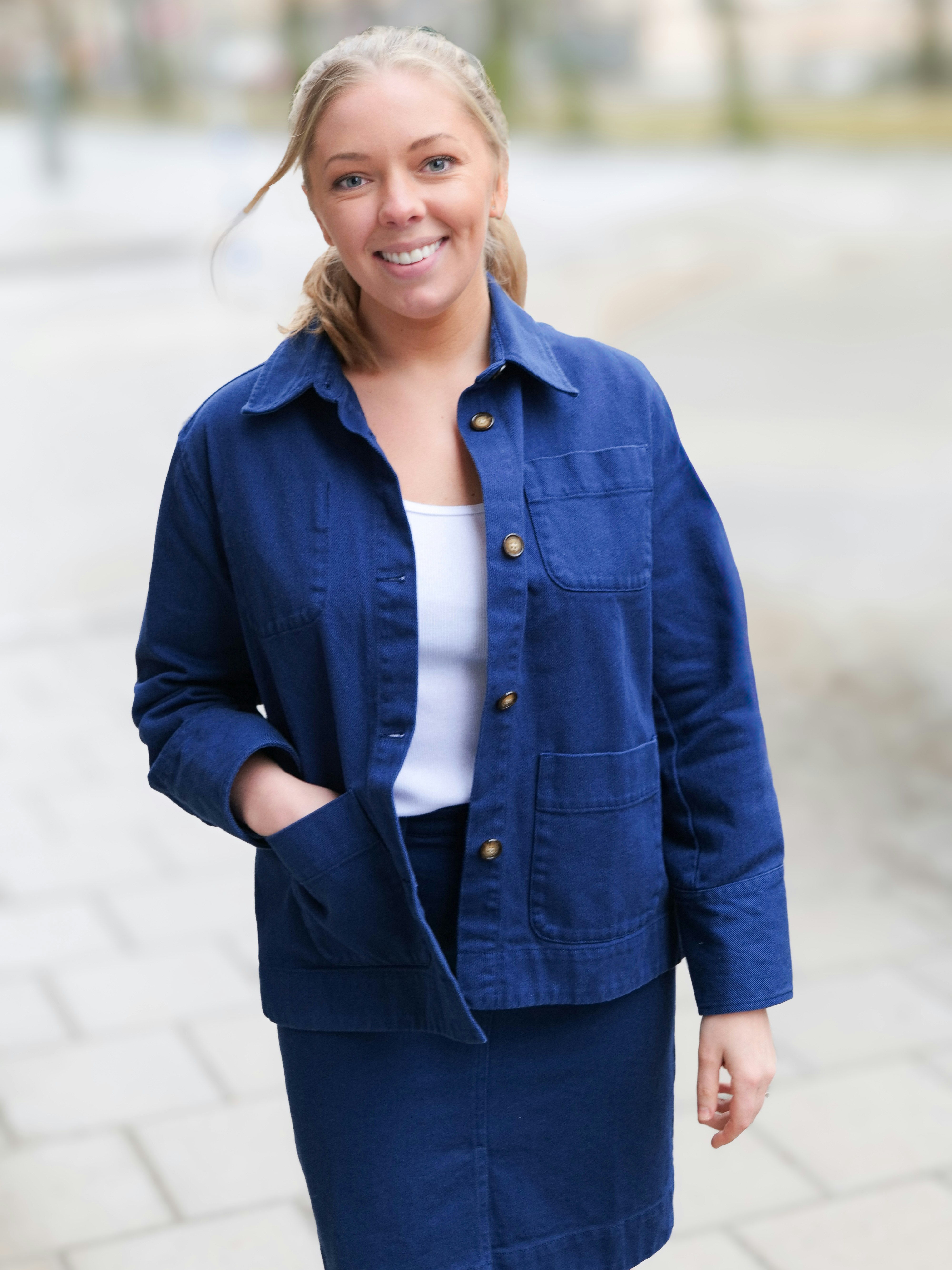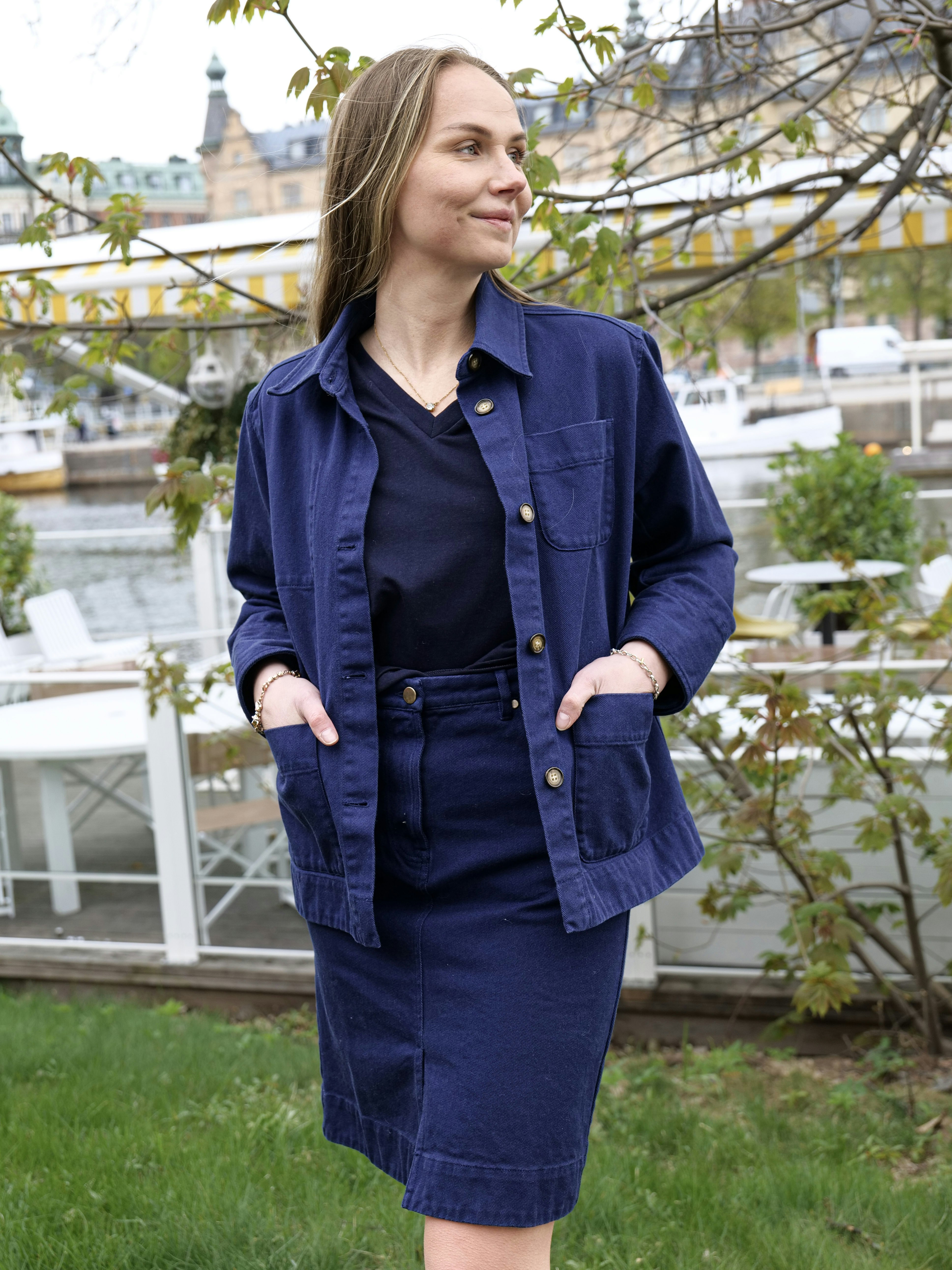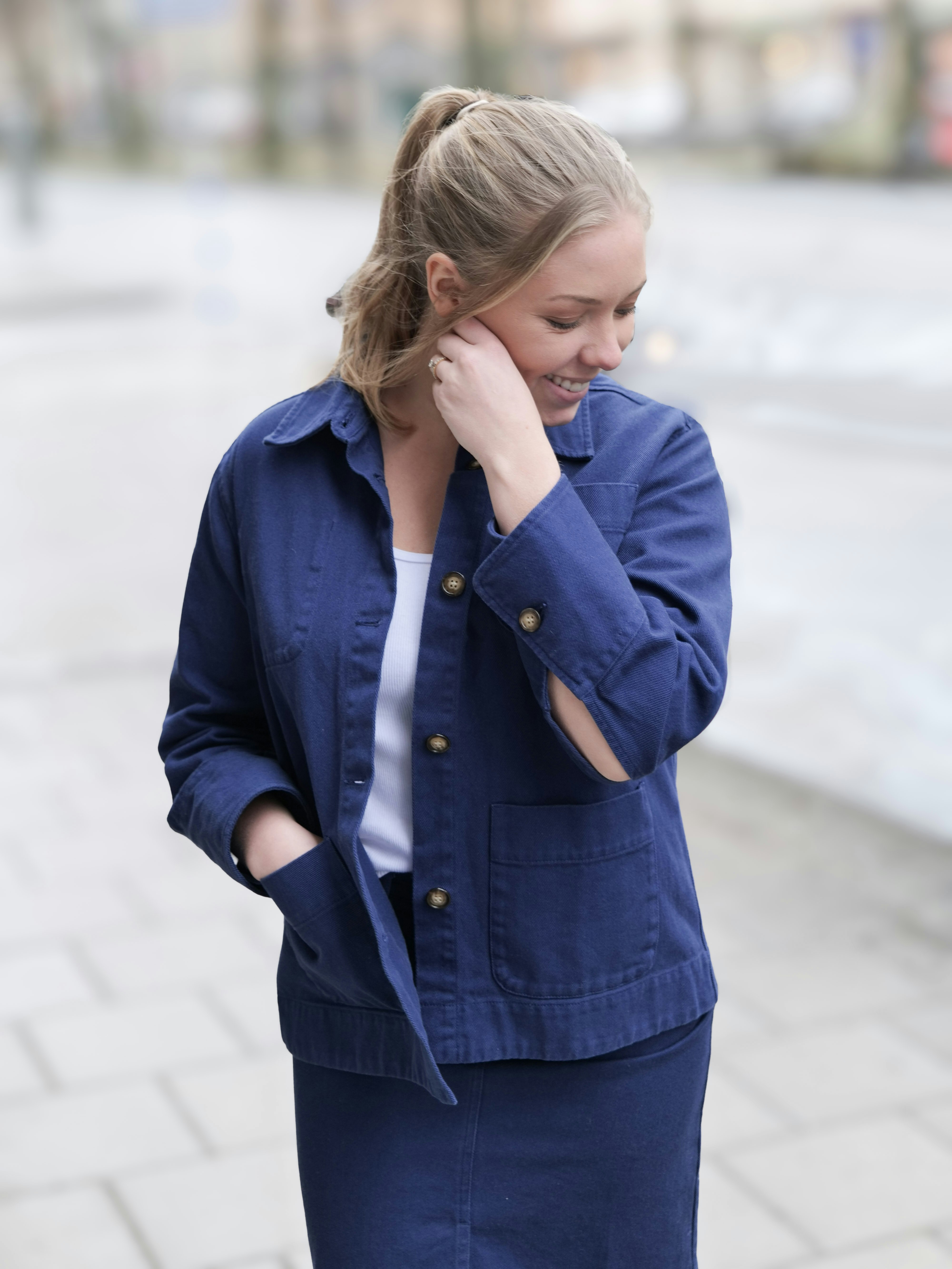 Djurö on luomupuuvillatakki. Istuvuus on säännöllinen ja hieman levenevä. Käytännölliset taskut keskellä edessä ja sisätasku.