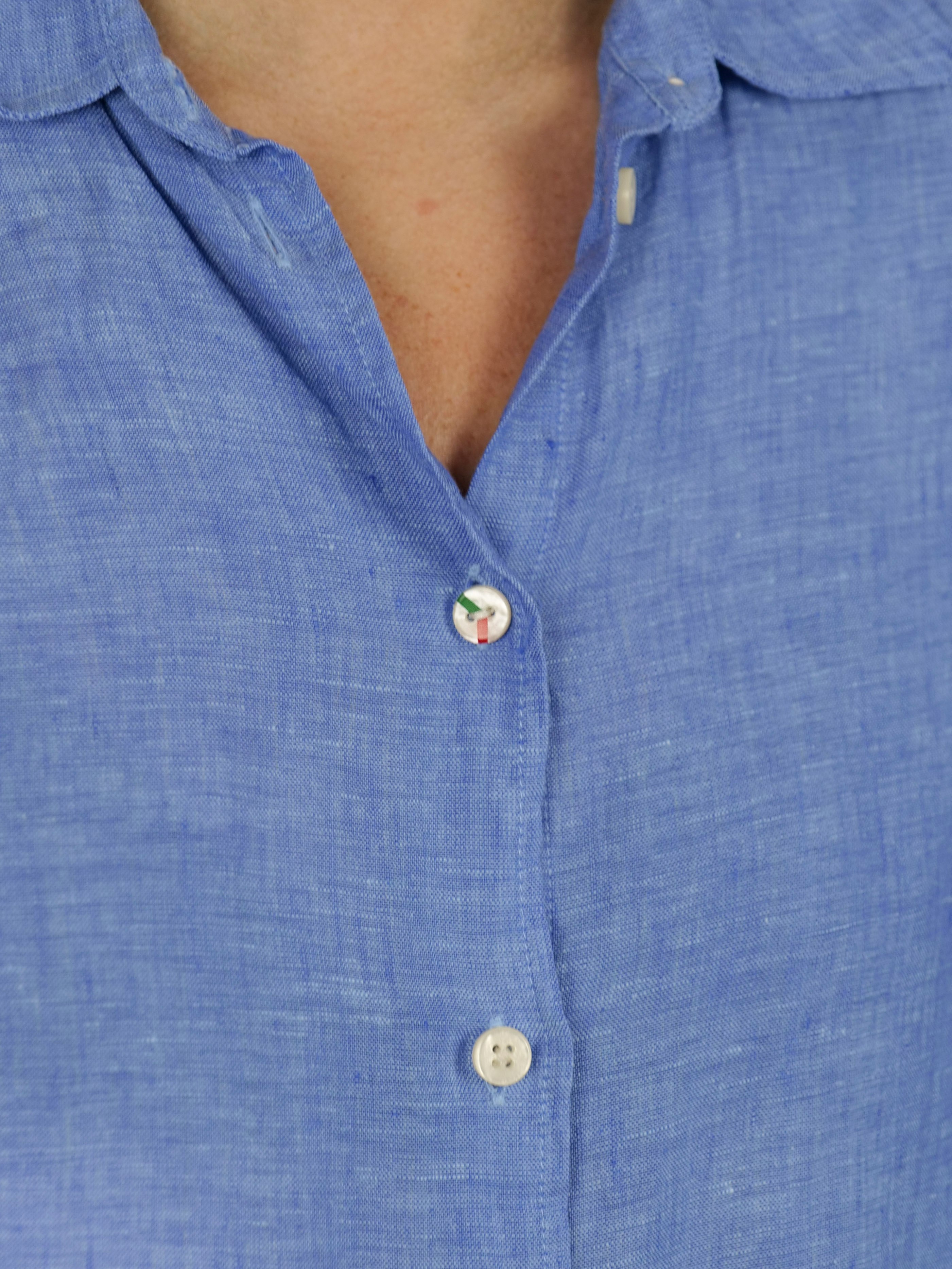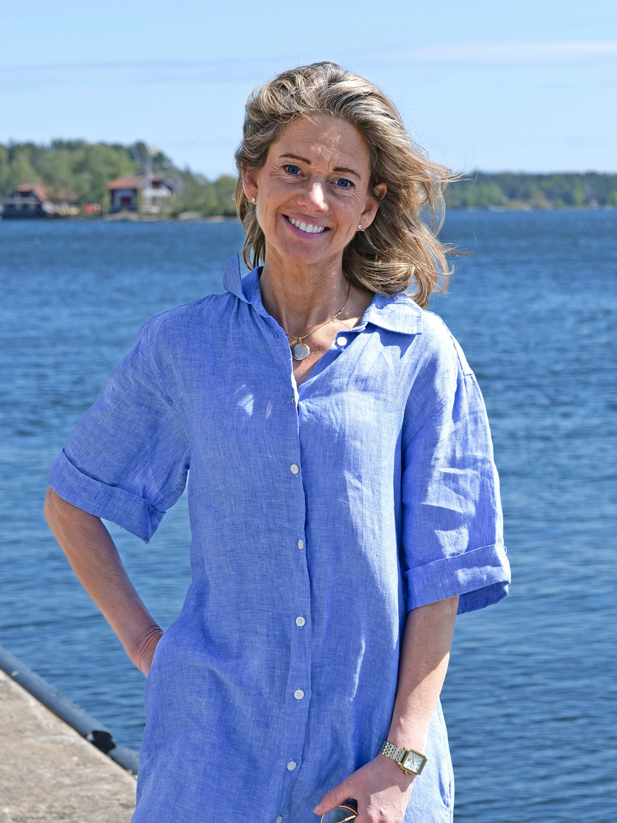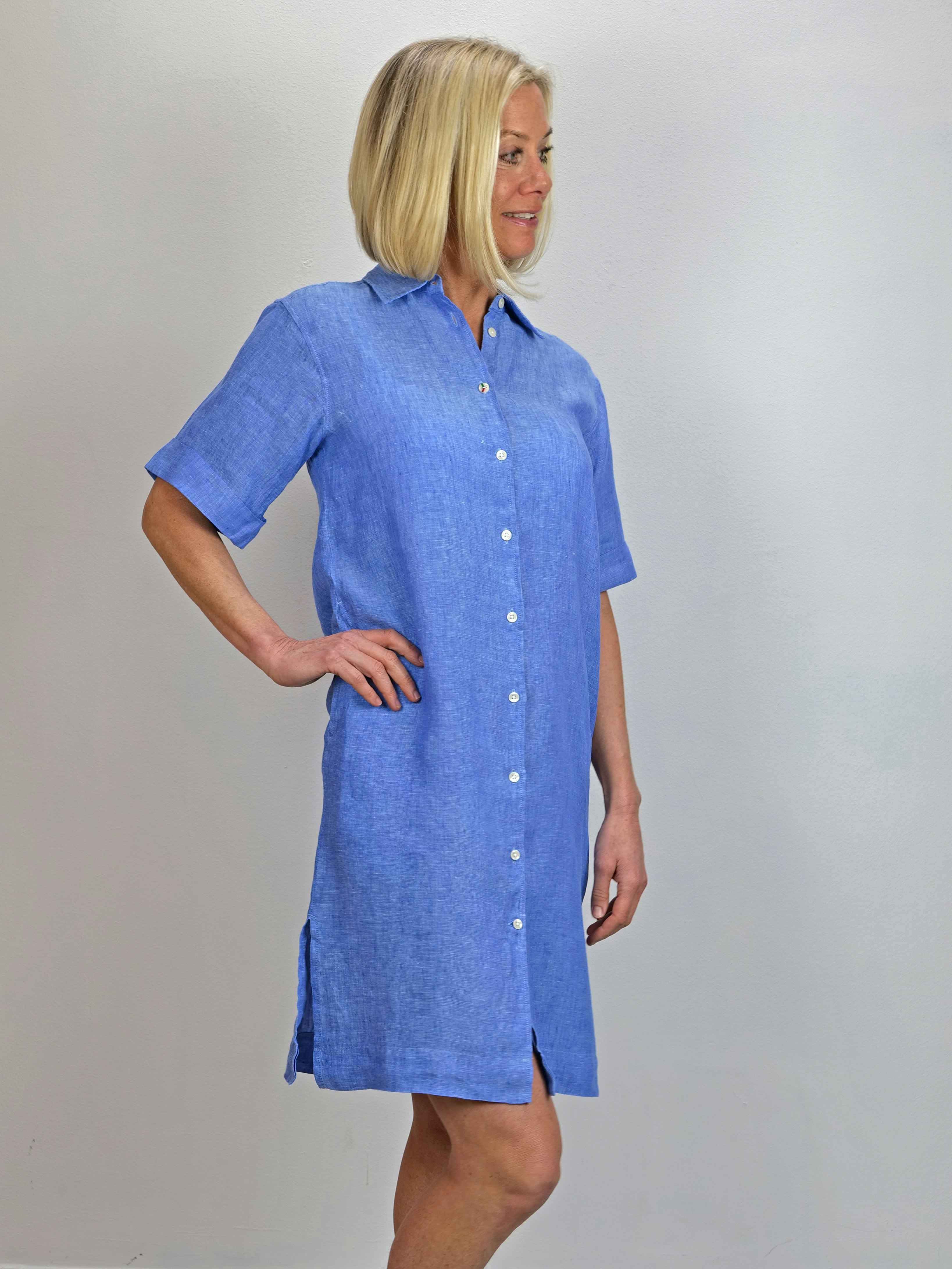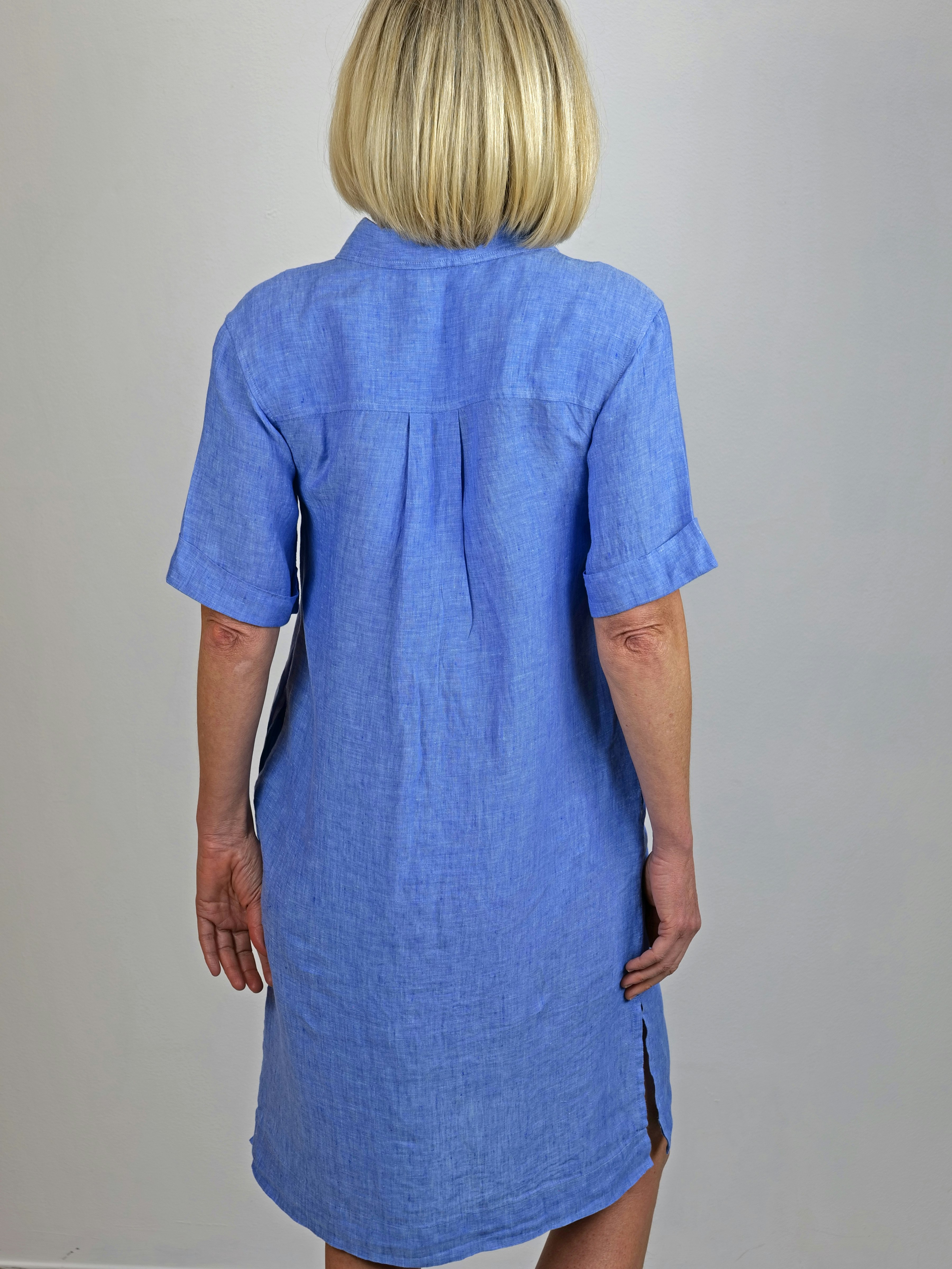 Lyhythihainen ja rennon mallinen Fjäderholmarna-pellavamekko on valmistettu pehmeästä ja miellyttävän tuntuisesta esipestystä pellavasta. Kolmantena nappina on käsinmaalattu Boomerang-nappi yksityiskohtana, joka kuvastaa perintöämme. Mekossa on syvät sivutaskut, jotka tekevät siitä käytännöllisen päivittäisessä käytössä. Sivuilla on tyylikkäät halkiot.