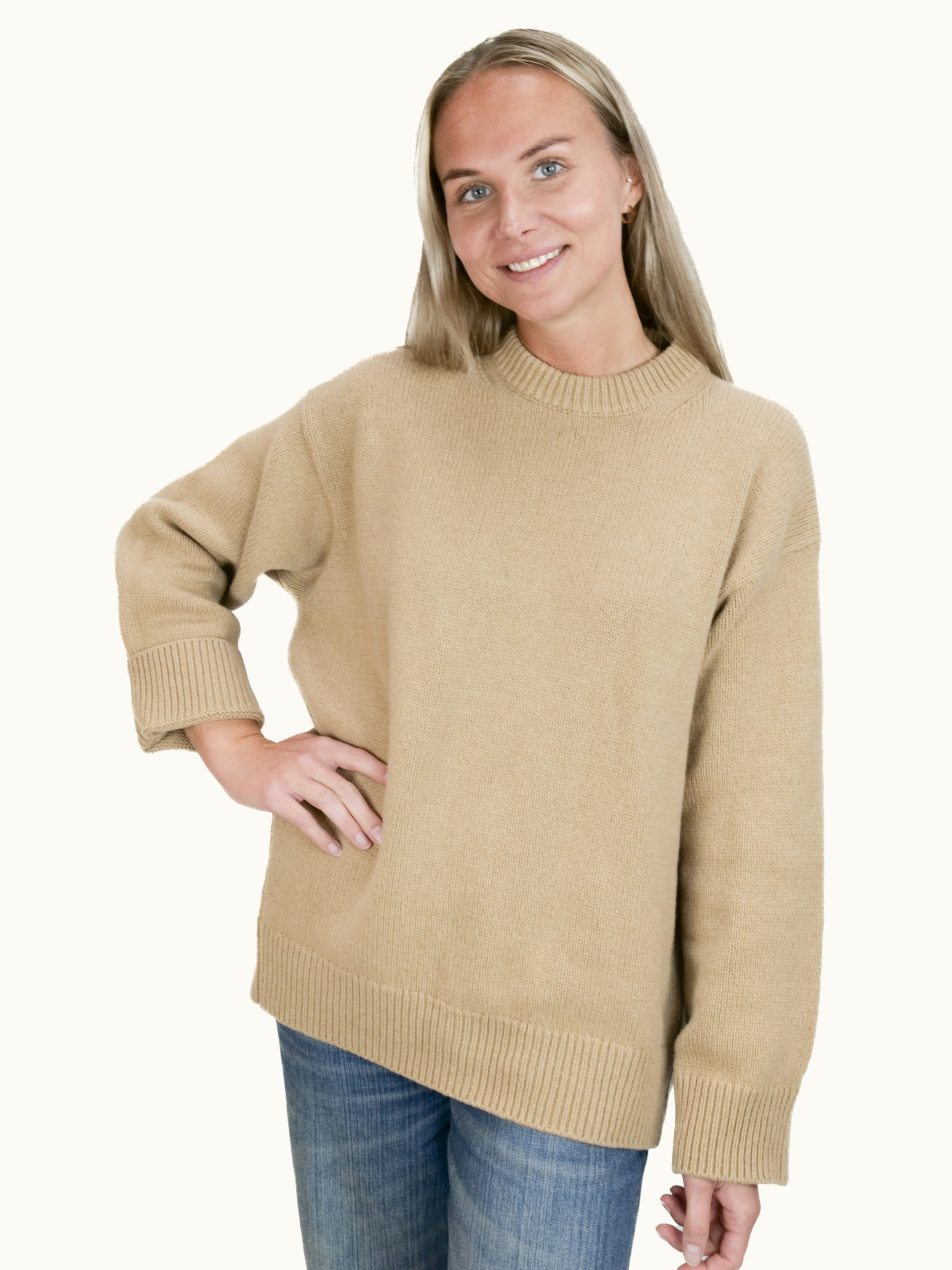 Eknö kashmirpusero kierrätetystä kashmirista on täydellinen yhdistelmä ylellisyyttä ja mukavuutta. Puserossa on pyöreä pääntie ja resorit, jotka luovat klassisen ja tyylikkään ilmeen. Leveät, löysät hihansuut hihansuissa ja helmassa sekä lasketut olkapäät lisäävät rentoa ja rentoa istuvuutta, mikä tekee villapaidosta monipuolisen ja mukavan vaatteen sekä arkisin että viikonloppuisin.