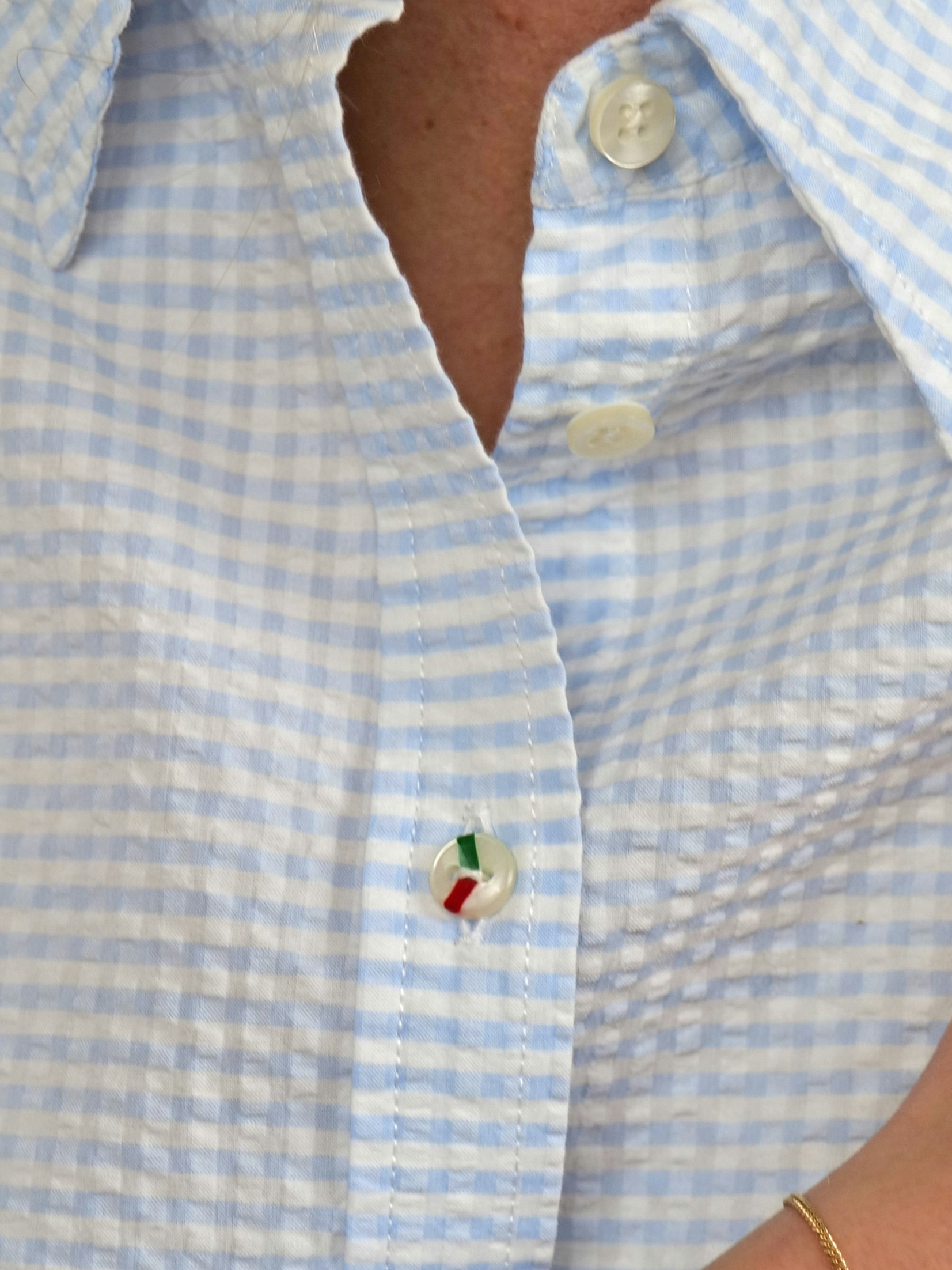 Den tredje knappen är vår ikoniska Boomerang-knapp, vars handmålade design speglar vårt engagemang för hantverk och historia.