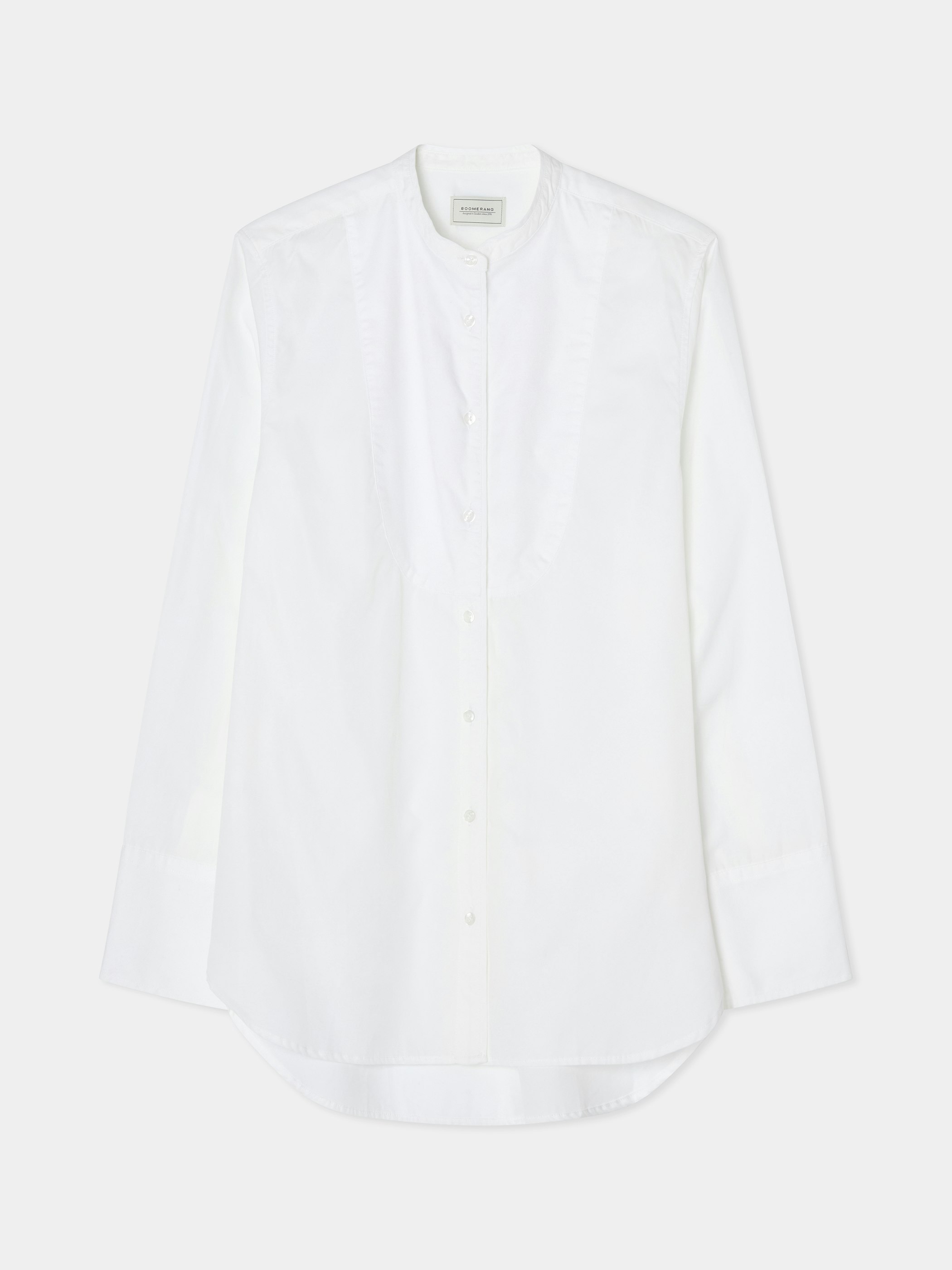 Kataja on suunniteltu ilman kaulusta moderniin ja minimalistiseen ilmeeseen. Takana on vastataitto, joka lisää liikkuvuutta ja eleganttia ilmettä. Paidan rintaosa on sileä ja smokkipaidan tavoin sisään työnnetty, mikä antaa hienostuneen ilmeen.
