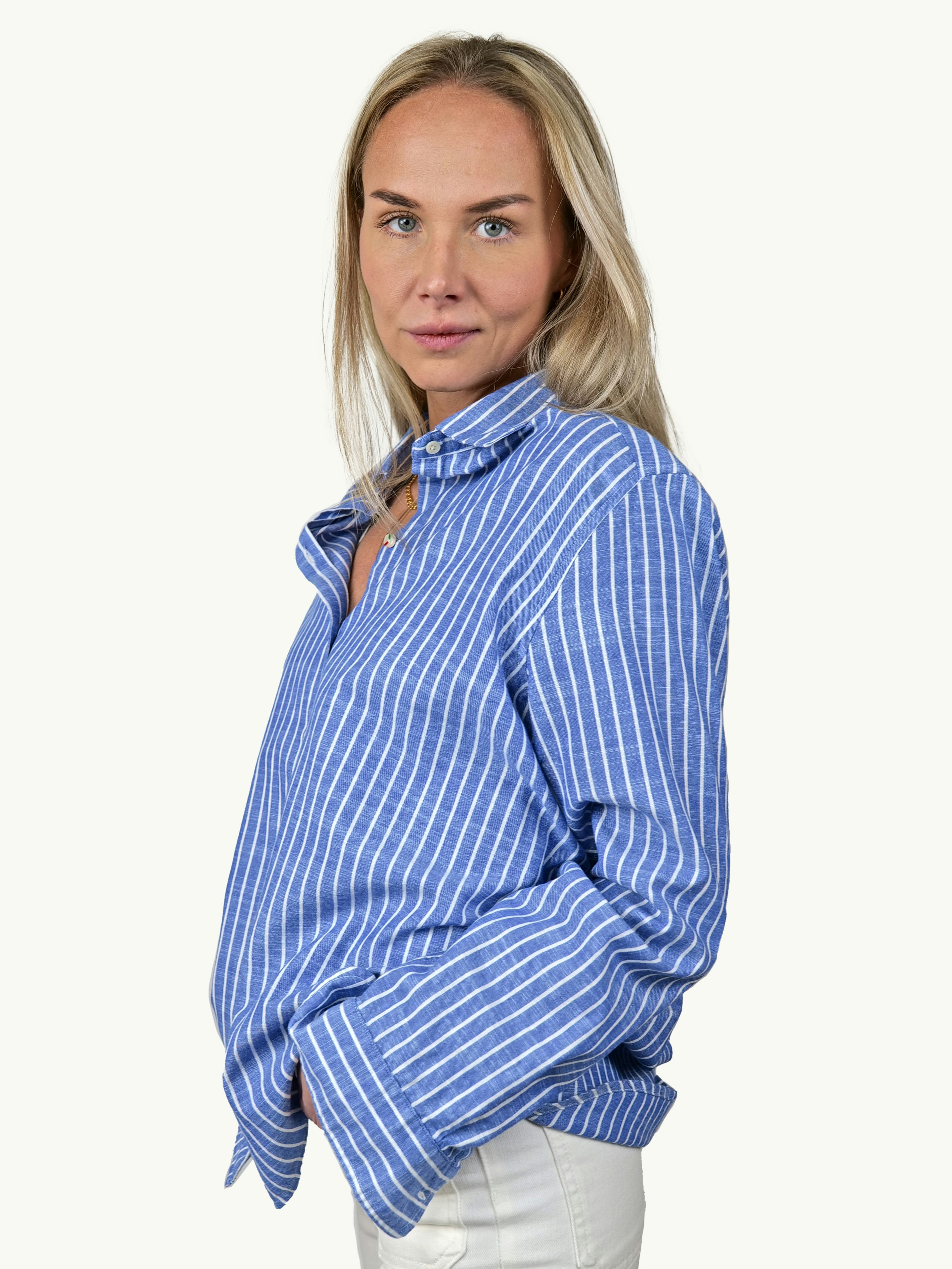 Flameekankainen Linö-paita on valmistettu 100 % luomupuuvillasta Portugalissa. Tyylikäs kangas on pehmeää käytössä ja vaikuttaa pellavalta, joka ei rypisty helposti. Rennon mallisessa paidassa on kaarroke takana sekä käsinmaalattu Boomerang-nappi kolmantena nappina.
