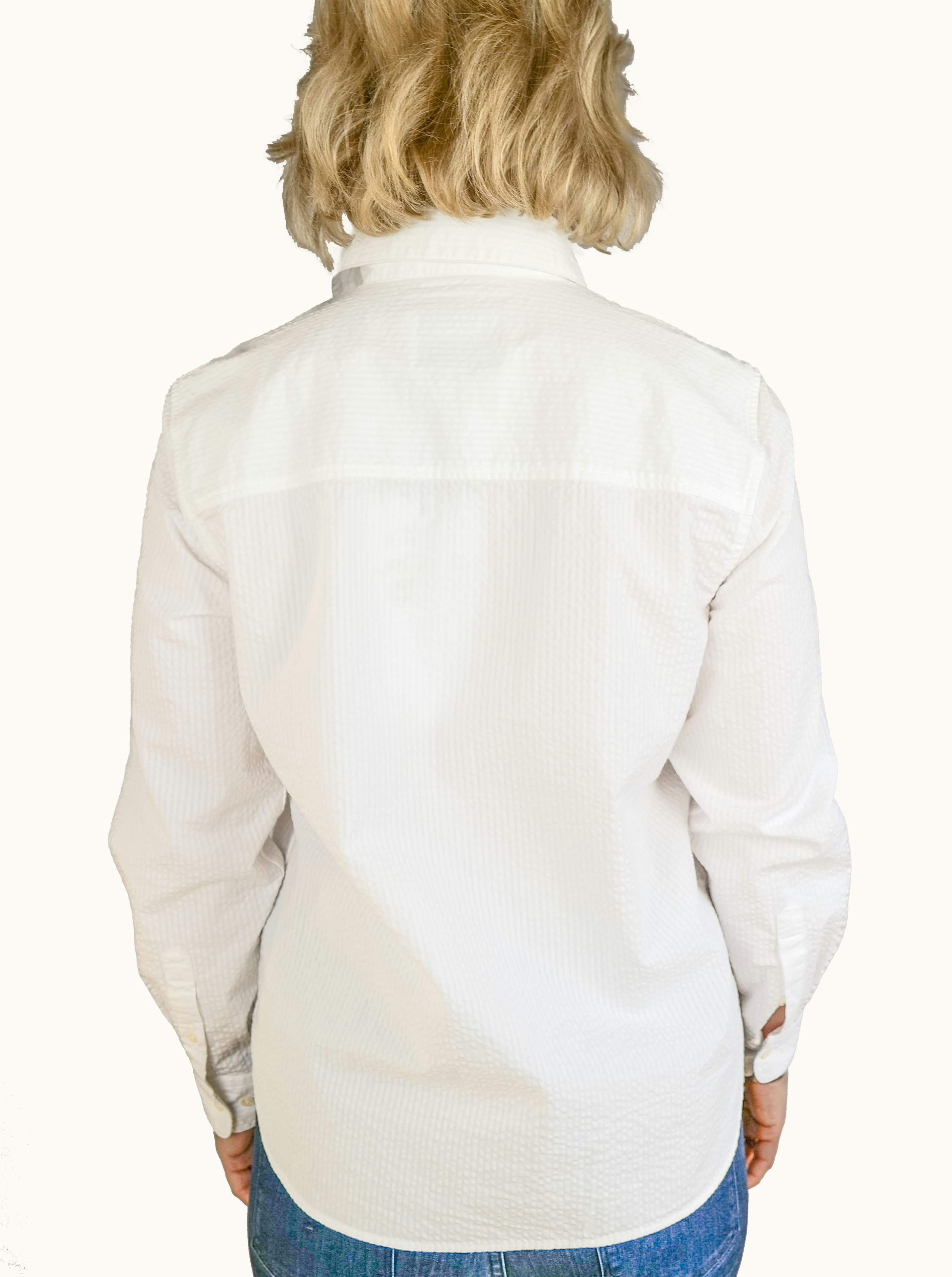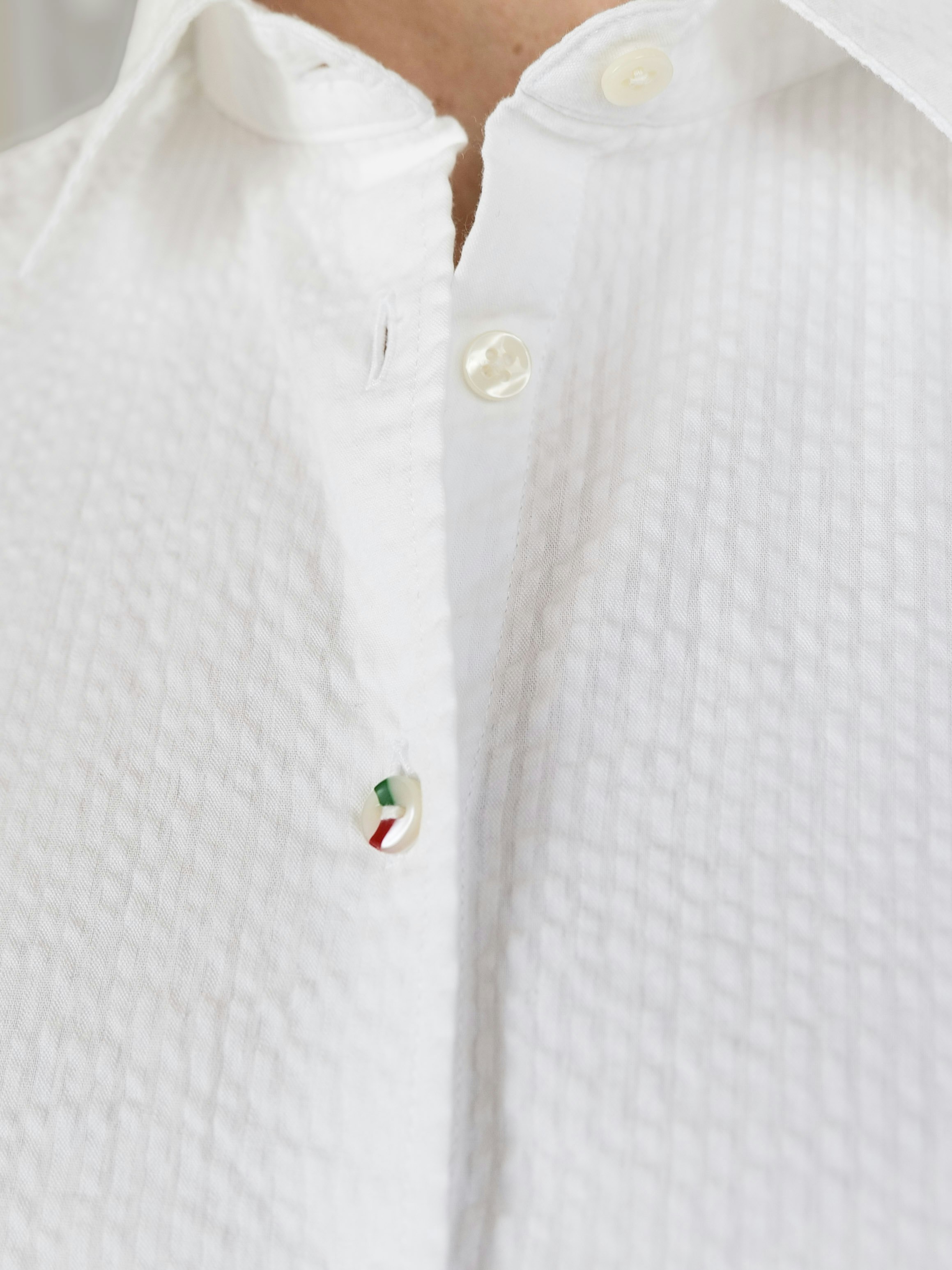 Linön seersucker-paita on valmistettu luomupuuvillasta Portugalissa.