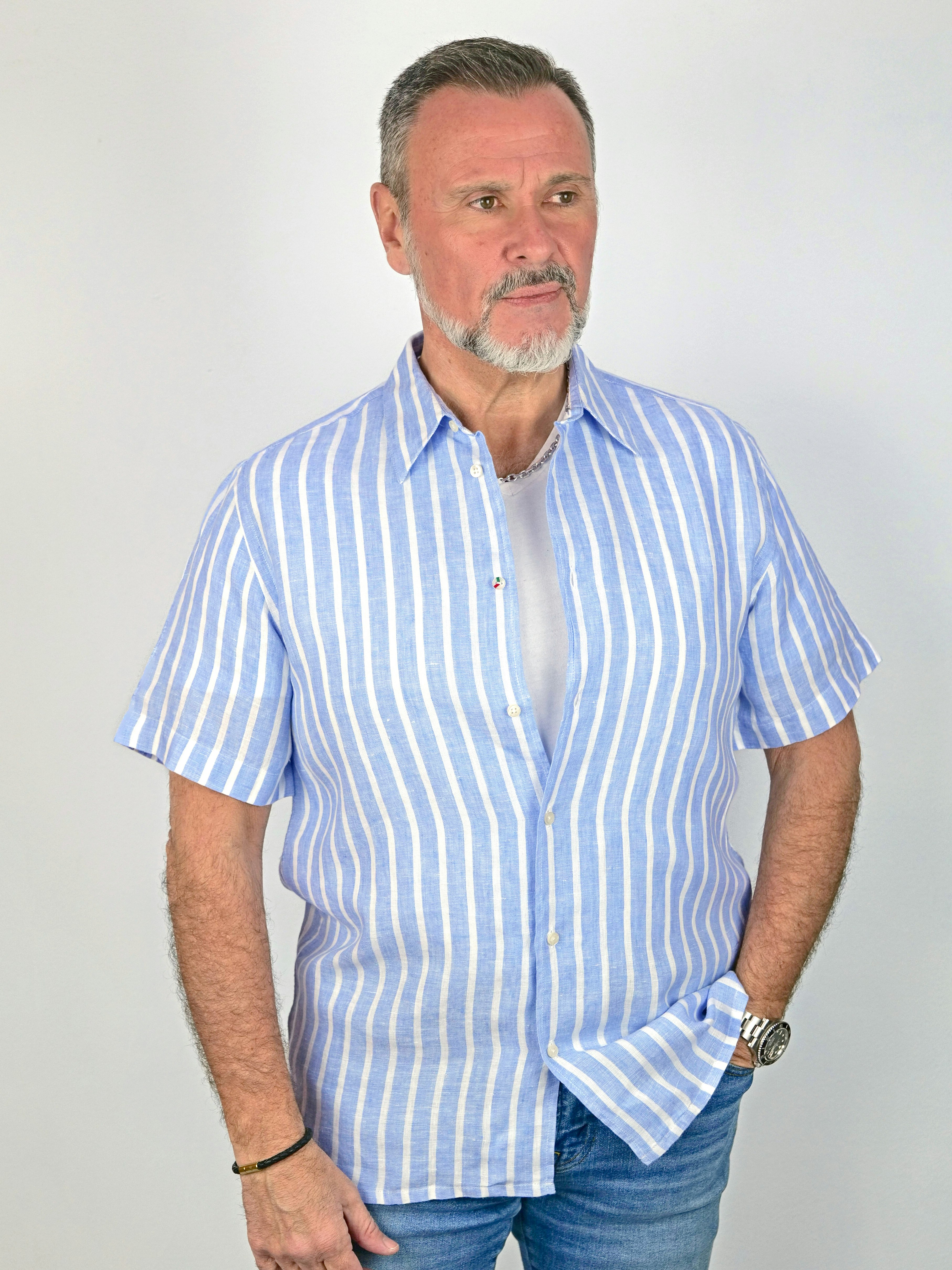 Väddö Randig Linneskjorta