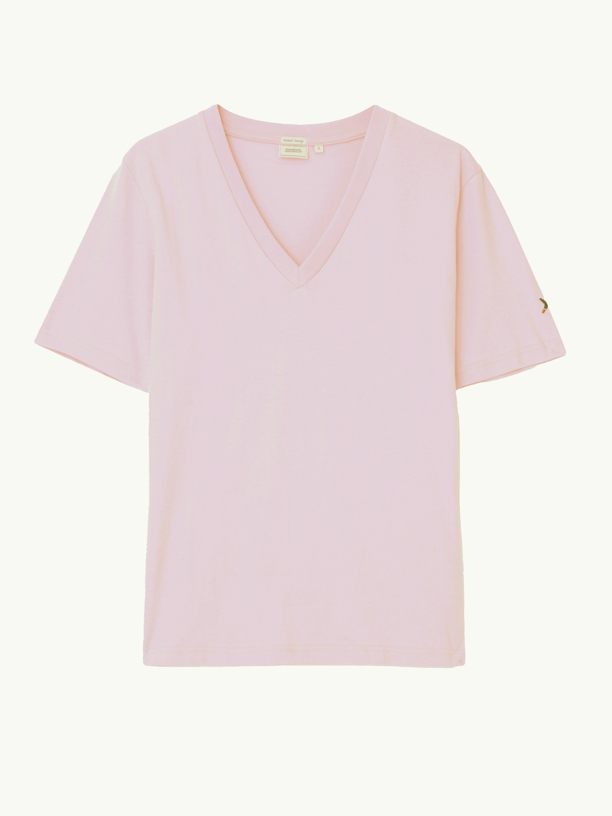 V-aukkoinen Mörtö-T-paita on neulottu huolella Ruotsissa. Se on valmistettu laadukkaasta ja pehmeästä luomupuuvillasta. Pääntiessä on leveä resori ja oikealla olkapäällä kirjailtu Boomerang-logo.