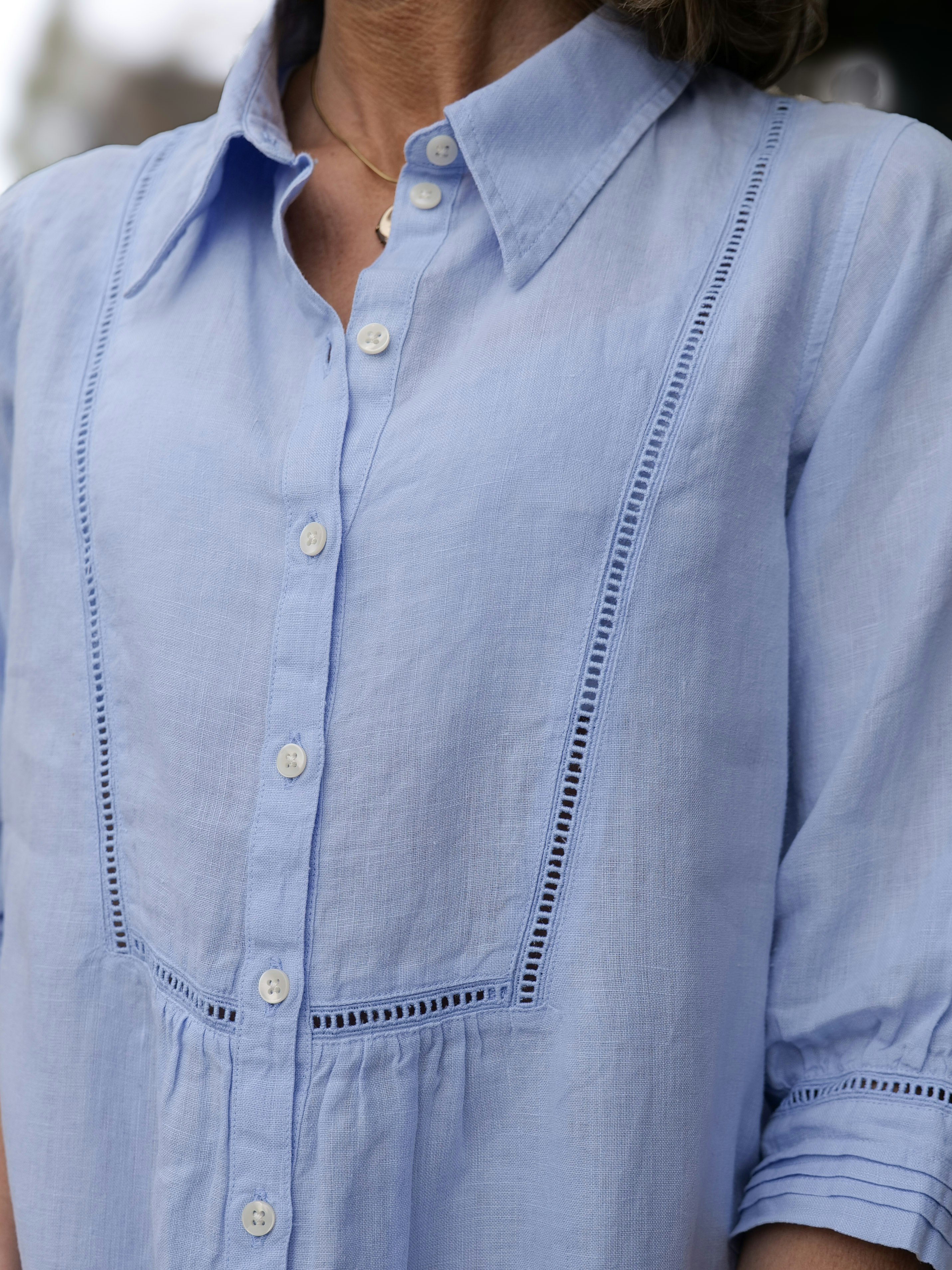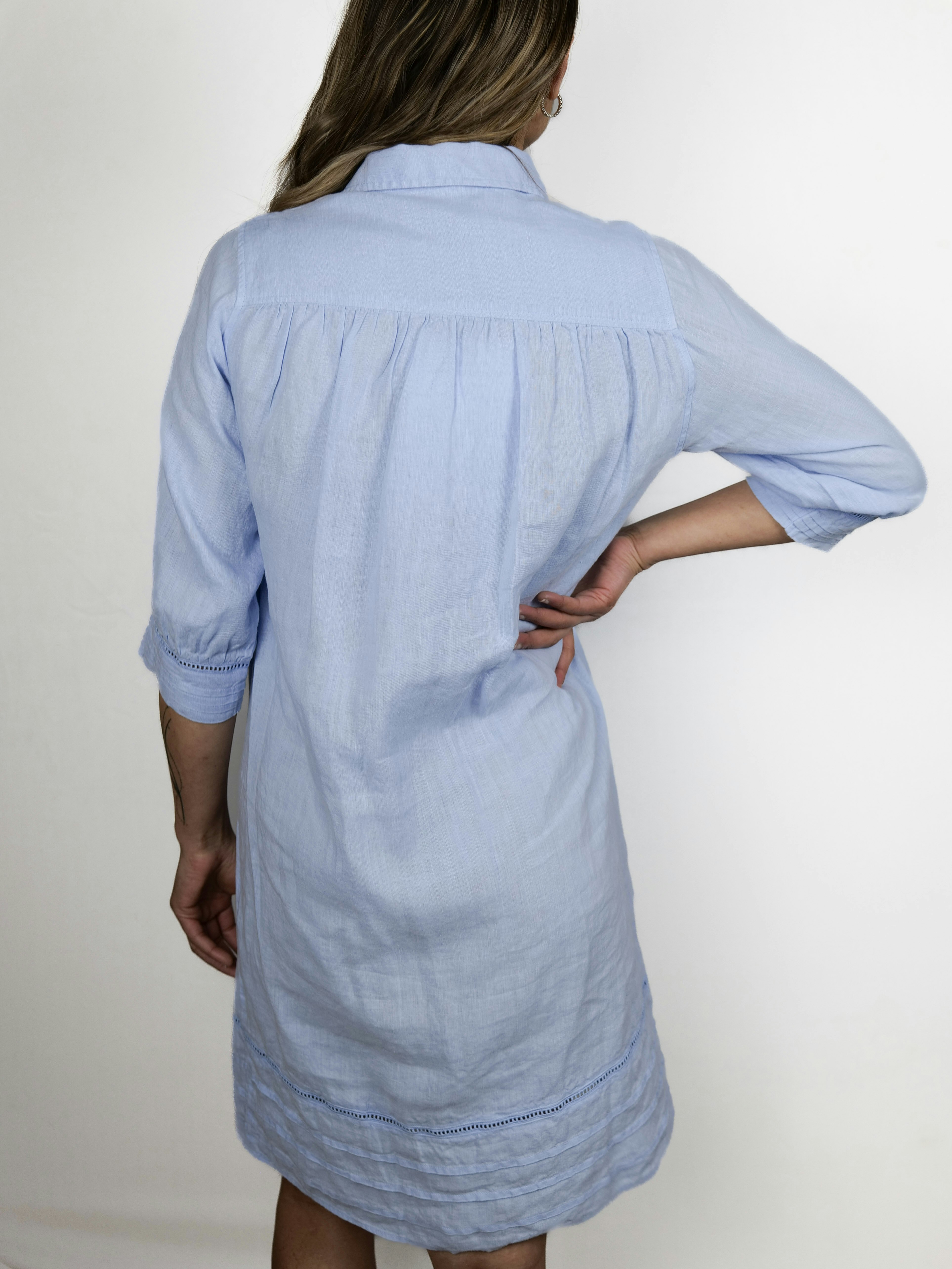 Klänningen är skapad i en avslappnad passform och i en förtvättad linnekvalitet som lovar en mjuk och skön känsla.