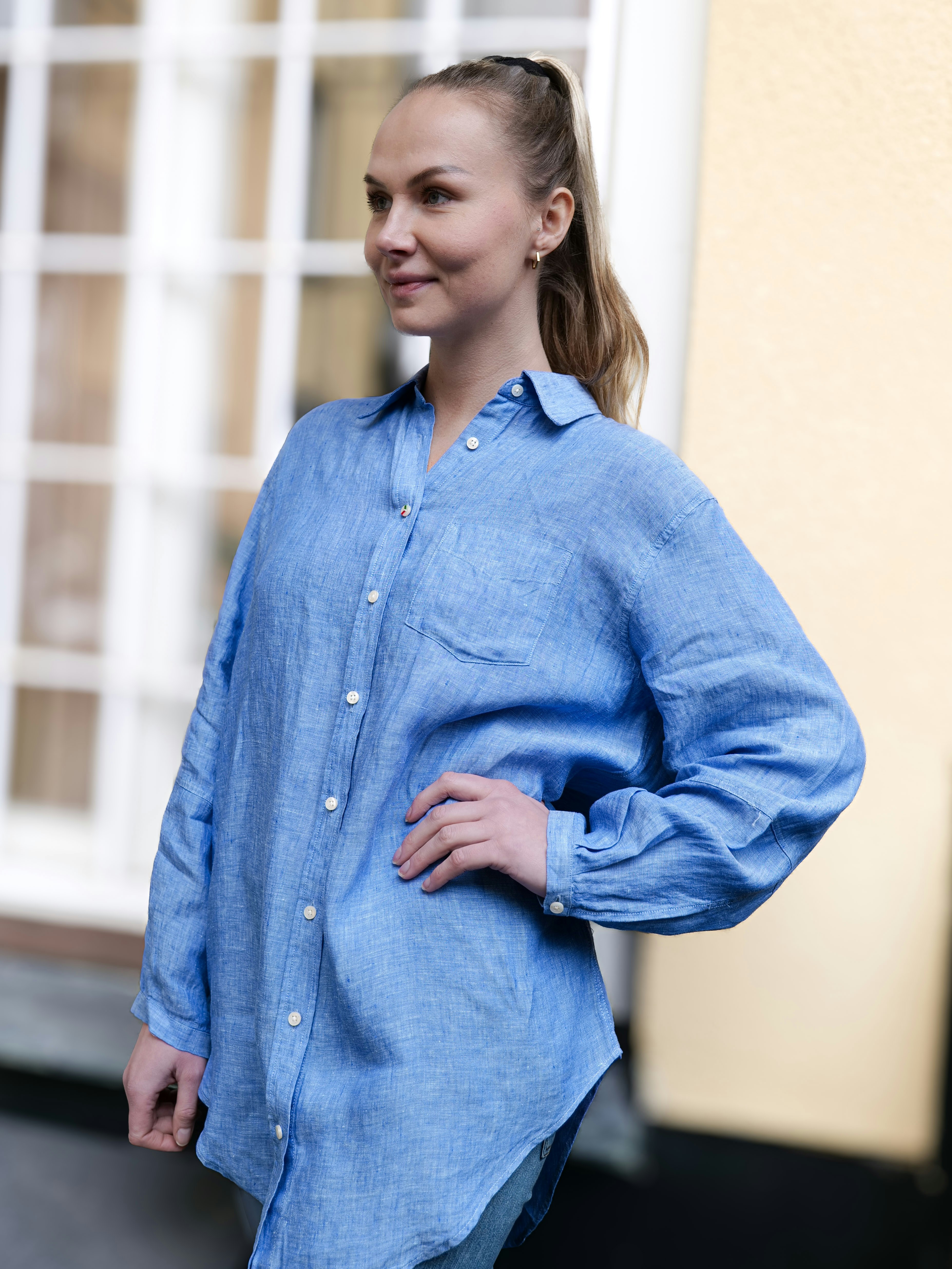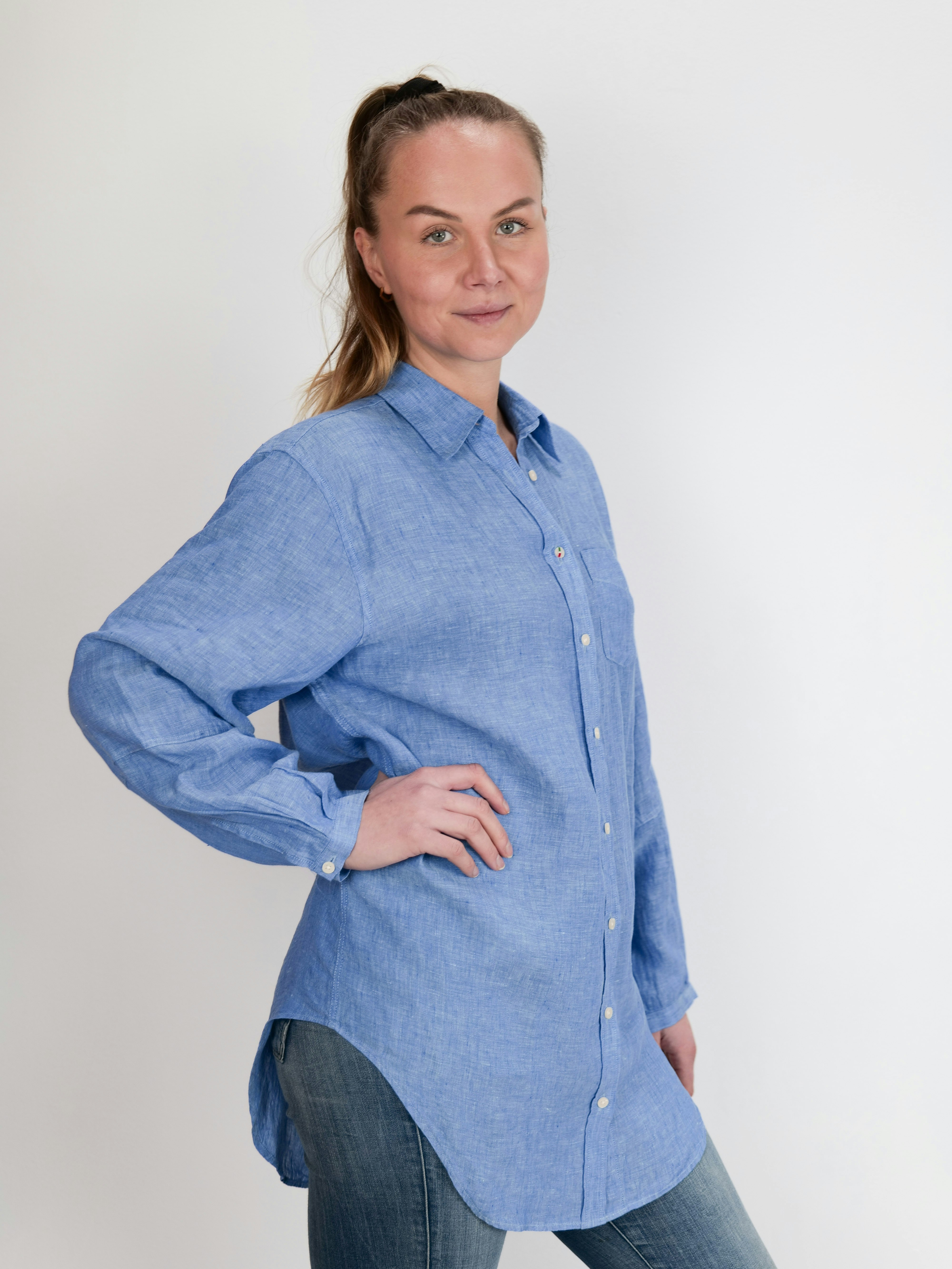 Slätön-pellavapaidassa on ilmava normaali istuvuus. Hihan rakenne on ilmeeltään pyöreä ilman kalvosimia, mikä luo modernin puseromaisen ilmeen. Paidassa on tyylikäs kaulus, napit ja nappilista. Esipesty pellava tuntuu pehmeältä iholla ja pysyy kuosissaan pitkään pesusta toiseen. Kolmas nappi on käsinmaalattu Boomerang-nappimme, ja muut napit ovat kierrätettyjä. Paidan pyöristetty helma ja koristeelliset sivuhalkiot luovat tyylikkään vaikutelman.