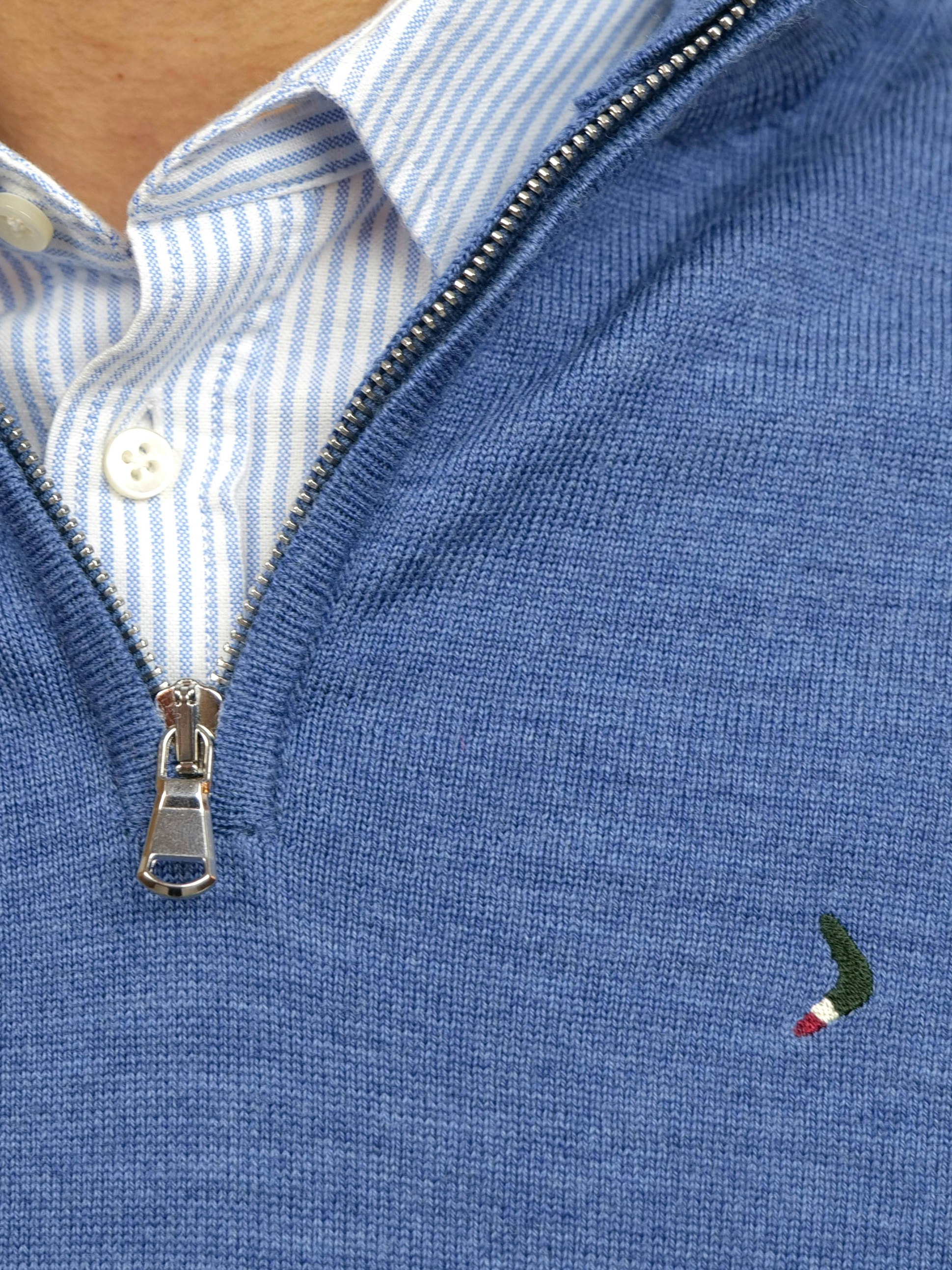 Neulepusero on viimeistelty neulotuilla hihansuilla ja helmalla, jotka antavat sille istuvan istuvuuden ja klassisen siluetin. Vasemmalla rinnalla on brodeerattu Boomerang-logo – hienovarainen yksityiskohta, joka kertoo sekä laadusta että käsityötaidosta.